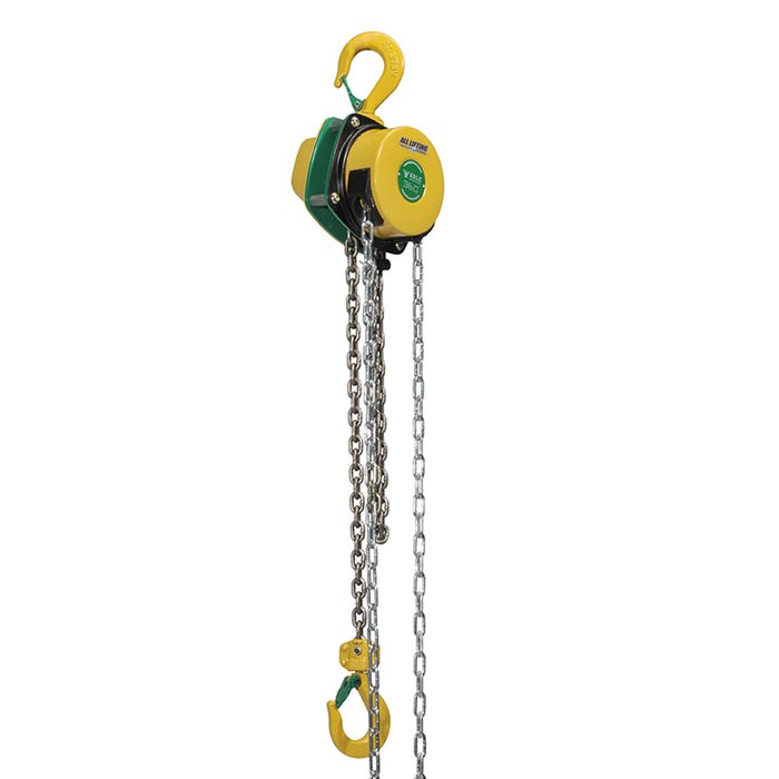 Our 360-degree rotation chain hoist features a rotating hand chain guide, enabling operations from multiple angles while keeping operators out of harm's way. Its premium brake system guarantees safe and quiet operation with minimal maintenance. The enclosed housing permits outdoor use, while the hardened load chain ensures optimal strength, flexibility, and durability. Sealed roller bearings and forged swivel hooks with latches prevent chain twisting, enhancing overall safety and efficiency. This hoist complies with AS1418.2 standards and is available as a non-stock item.Features