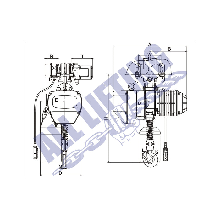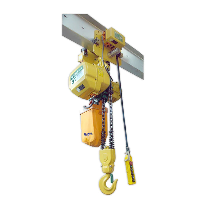 Our Electric Chain Hoist with Electric Trolley is a versatile lifting solution designed for efficiency and durability. Featuring a lightweight yet robust aluminum shell, this hoist is available in capacities ranging from 0.5 to 5 tons. Equipped with a limit switch to prevent overloading and a side magnetic braking device for emergencies, it ensures optimal safety in lifting operations. The inclusion of a chain container and alloy chain enhances convenience and longevity. The added advantage of an electric trolley further expands the hoist's versatility, making it an ideal choice for a wide range of lifting applications.Features
