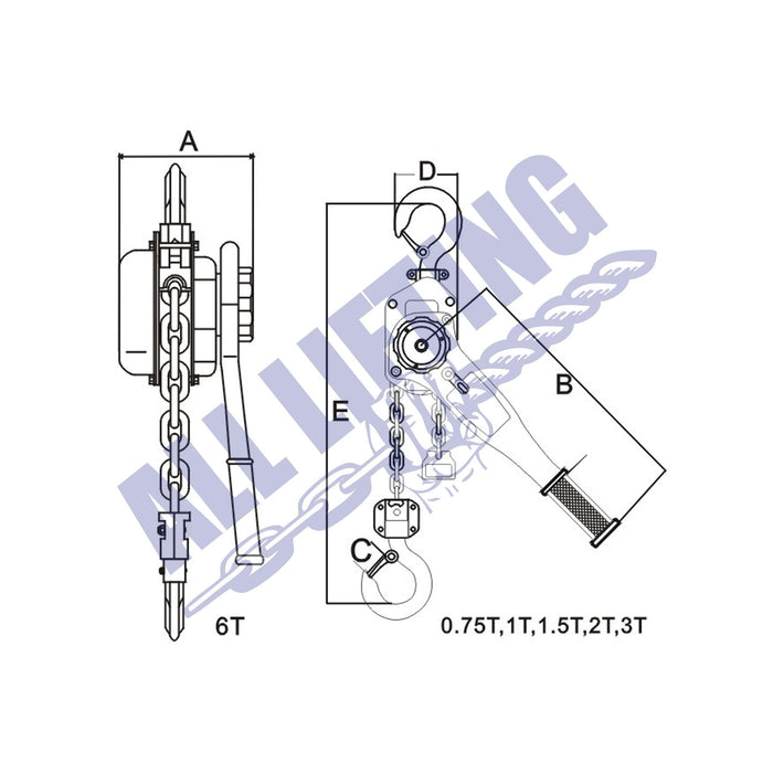 Our ALS Lever Block LB II Series has been built with strength, precision, and safety and Engineered with a Grade 80 load chain. This lever block is built to withstand heavy loads while maintaining durability. The forged and heat-treated load hooks not only offer batch traceability but also feature stretch indicators, providing an added layer of safety and load monitoring. With a 360-degree handle rotation and stroke-to-ratchet indicators, the ALS Lever Block ensures operational ease and control. The double pawl brake system and forged safety latch further enhance safety during lifting operations. Sealed roller bearings contribute to smooth and efficient performance. Tailored to meet diverse needs, other sizes and chain lengths are available upon request.Features