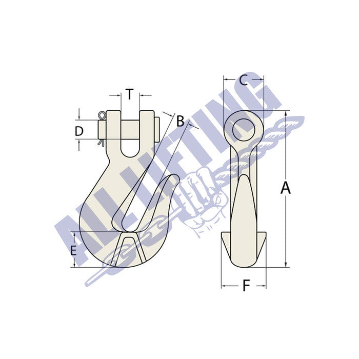 Our Clevis Grab Hook Grade 70 is crafted with superior steel and quenched and tempered with gold zinc plating, these hooks meet AS 4344 standards to provide the most rugged and durable hook available. Made from dropped forged steel, our hooks can withstand even the toughest conditions. With a sleek and modern design, it will increase productivity and efficiency on any project. Our hooks are designed to last through whatever tasks you have in store.