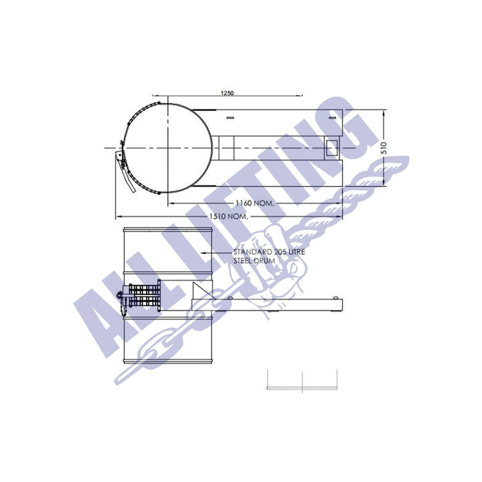 Part #TypeWLL (kg)Drum Size (L)Unit Weight (kg)Load Centre (mm)Pocket Size (mm)Pocket Centres (mm)HCG (mm)