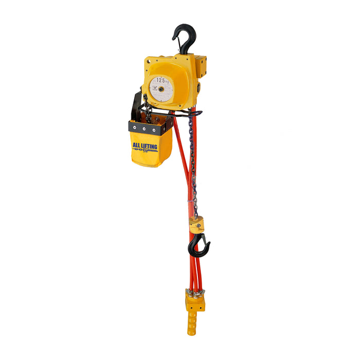Our EHL Series Chain Pneumatic Air Hoist (Pull Cord) is your solution for compact, lightweight, and precise lifting operations. This air hoist boasts a quality load chain, enabling high-frequency use, and making it a reliable choice for industries such as mining, engineering, construction, and offshore applications. With a straightforward installation process – simply connect the hose – and equipped with upper and lower limit switches, this hoist ensures efficient and safe lifting. The inclusion of rotary vane motors in strong, lightweight aluminum bodies allows for easy handling, and variable speed models are also available to meet your specific requirements.Features