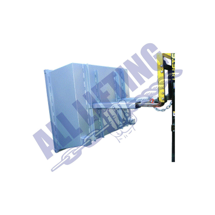 - The self-dumping mechanism underneath the bin allows the operator to remain seated inside the forklift during the tipping cycle