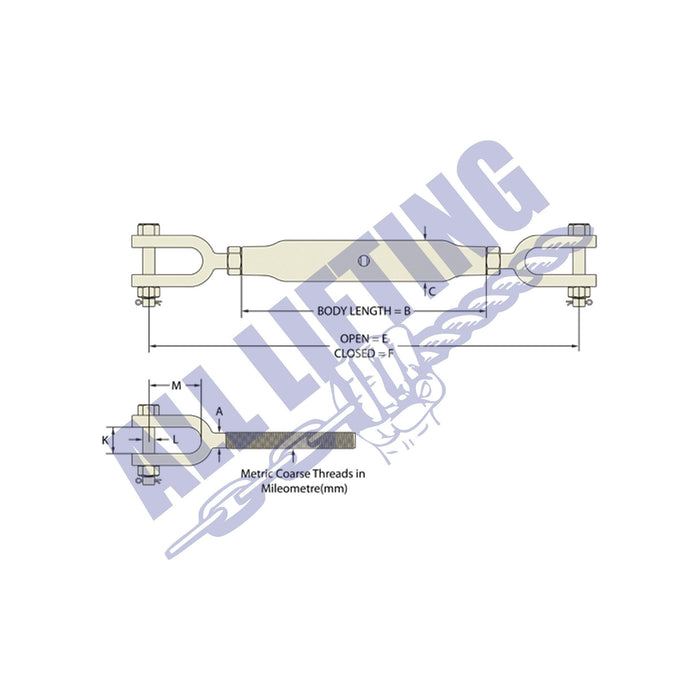 Our robust Rated Rigging Screw Jaw and Jaw is made from a high tensile material and is hot dipped galvanised for strength and durability. With the jaw and jaw design, it's perfect for straight or inline tension applications, often used with wire ropes and chains. Whether you need it for industrial lifting or other applications Rated Rigging Screw Jaw and Jaw is up to task. It comes in a variety of sizes, working loads, and configurations, so you can find the one that best meets your needs.
